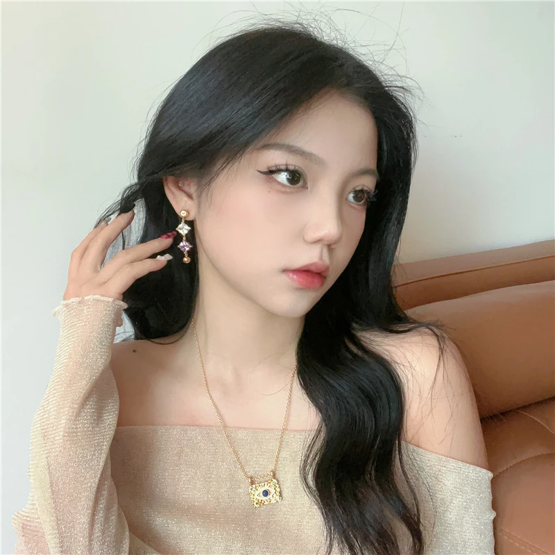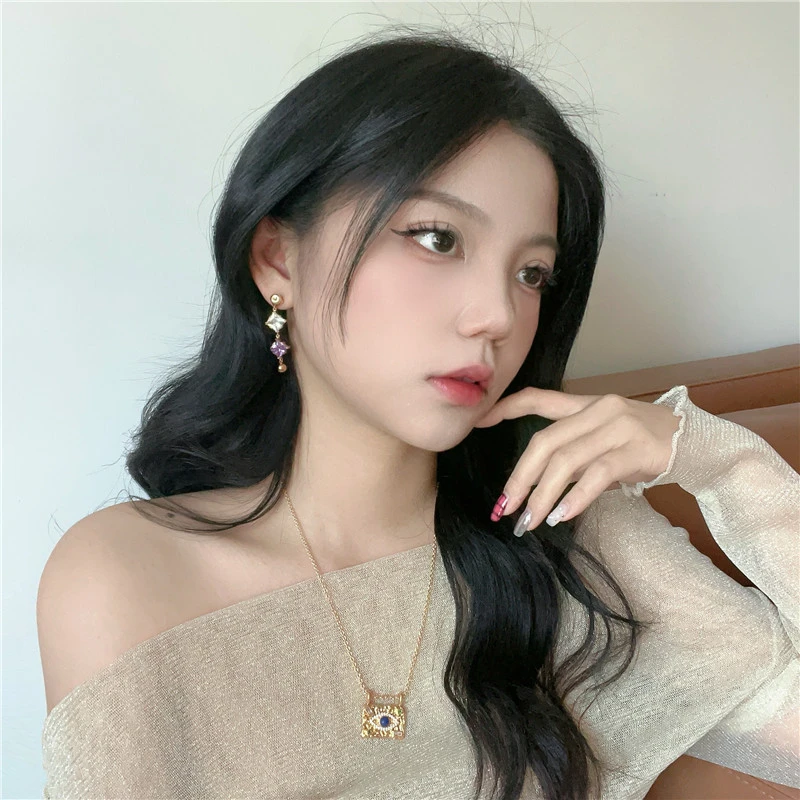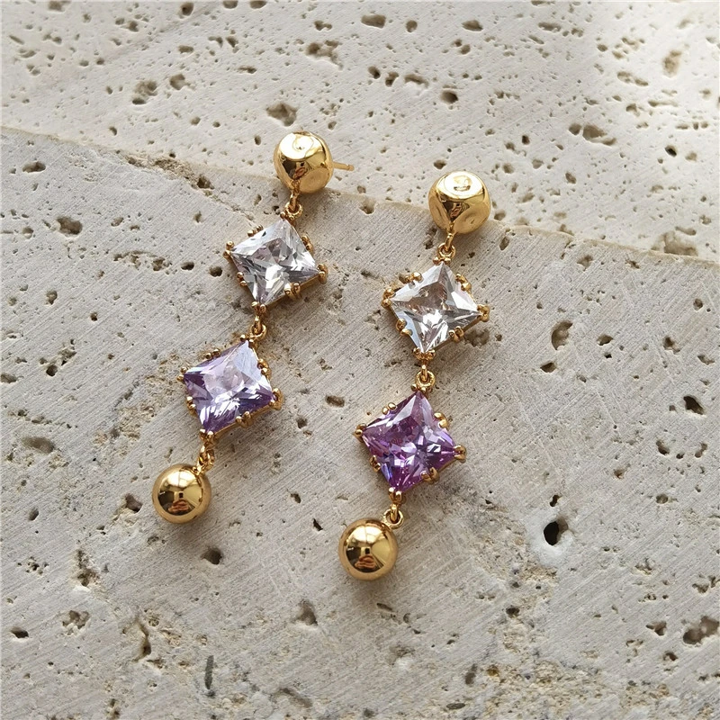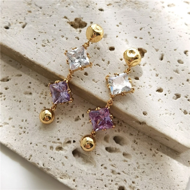 1 Pair Commute Square Inlay Copper Drop Earrings