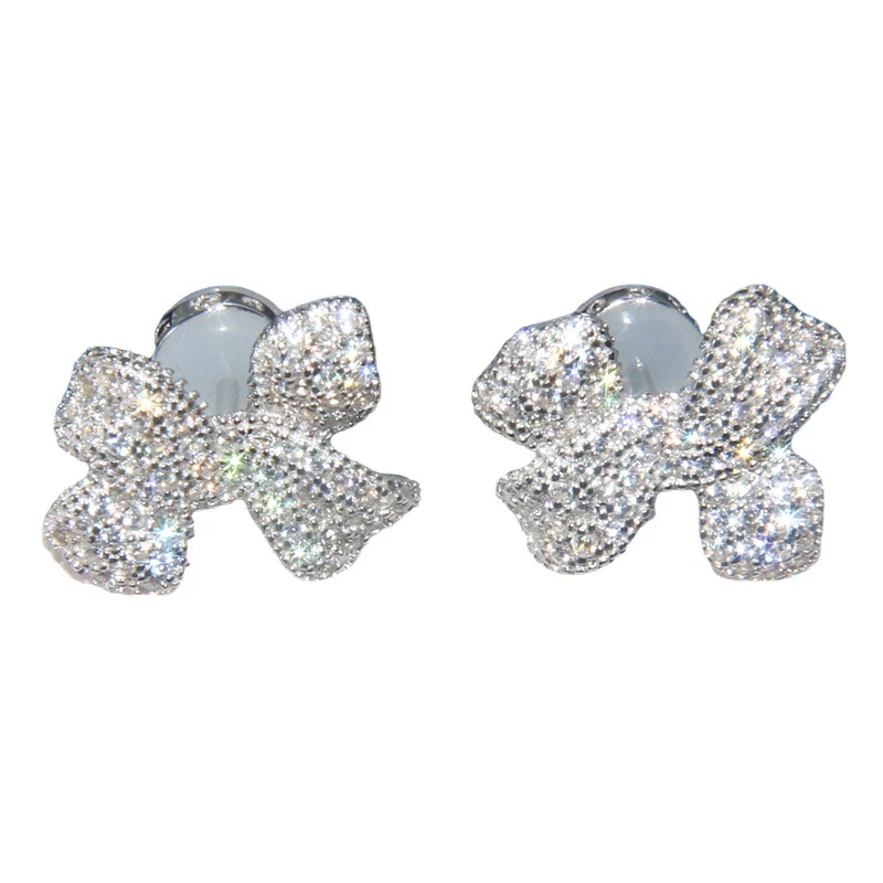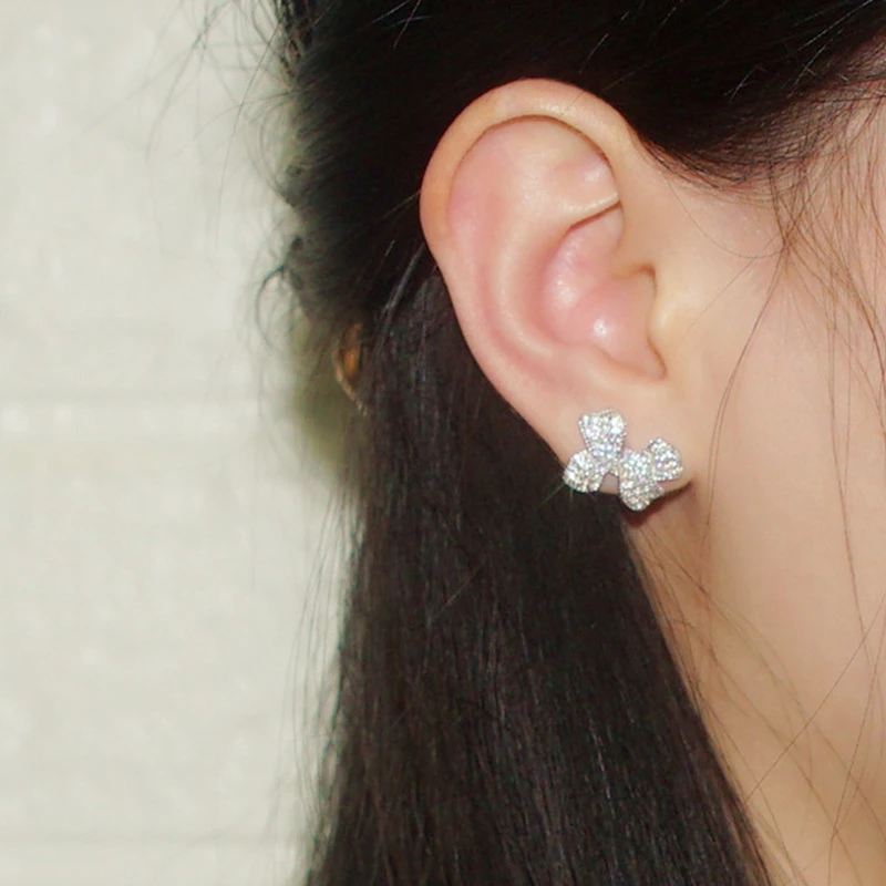 1 Pair Elegant Shiny Bow Knot Inlay Sterling Silver Zircon Ear Studs