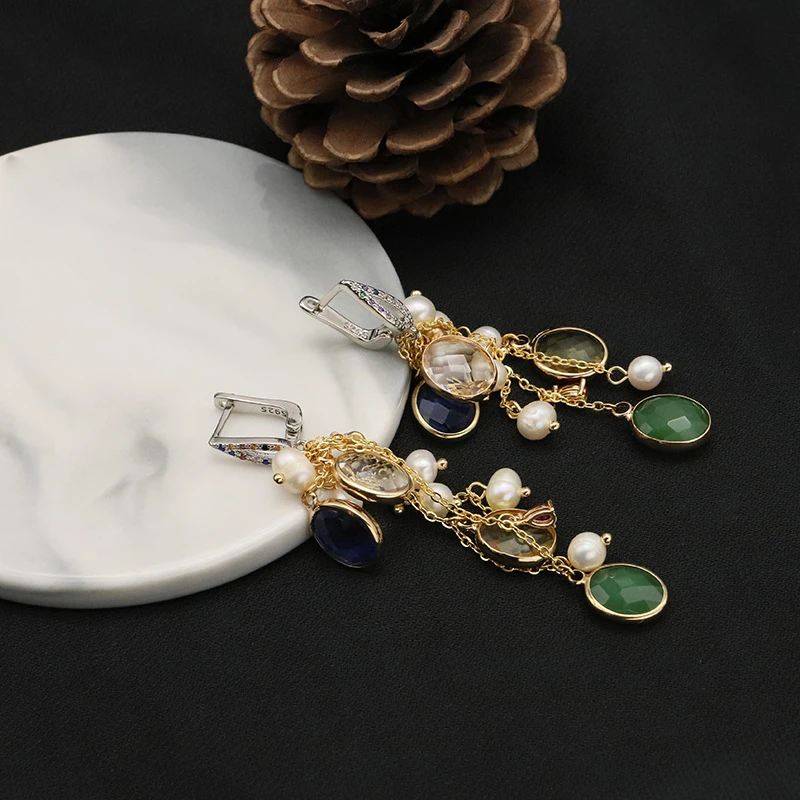 | option | White Blue Green Yellow Pearl Tassel Suit Ear Clip |