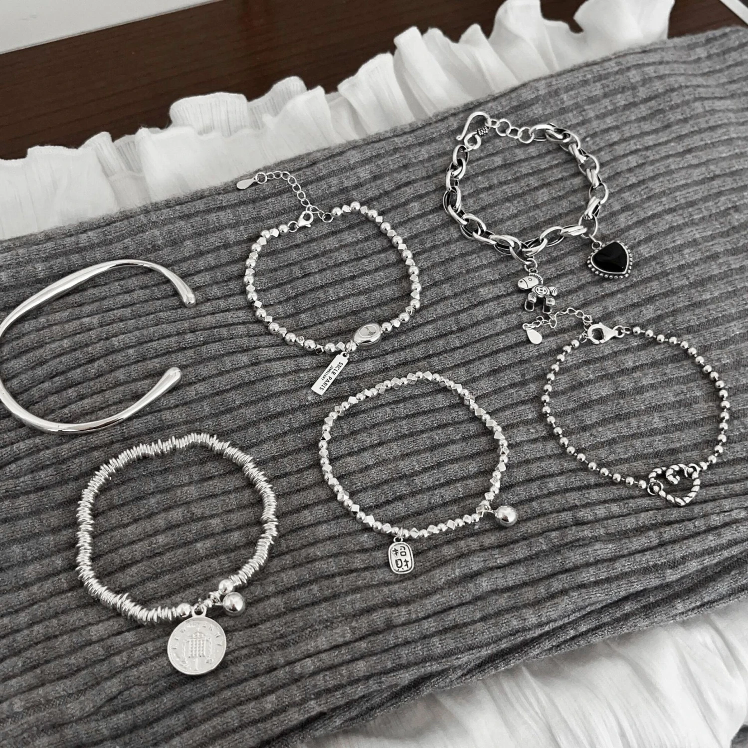 1 Piece Retro Heart Shape Sterling Silver Patchwork Bracelets