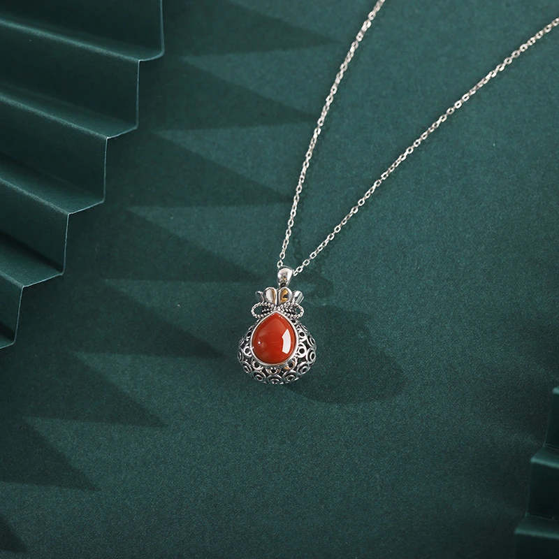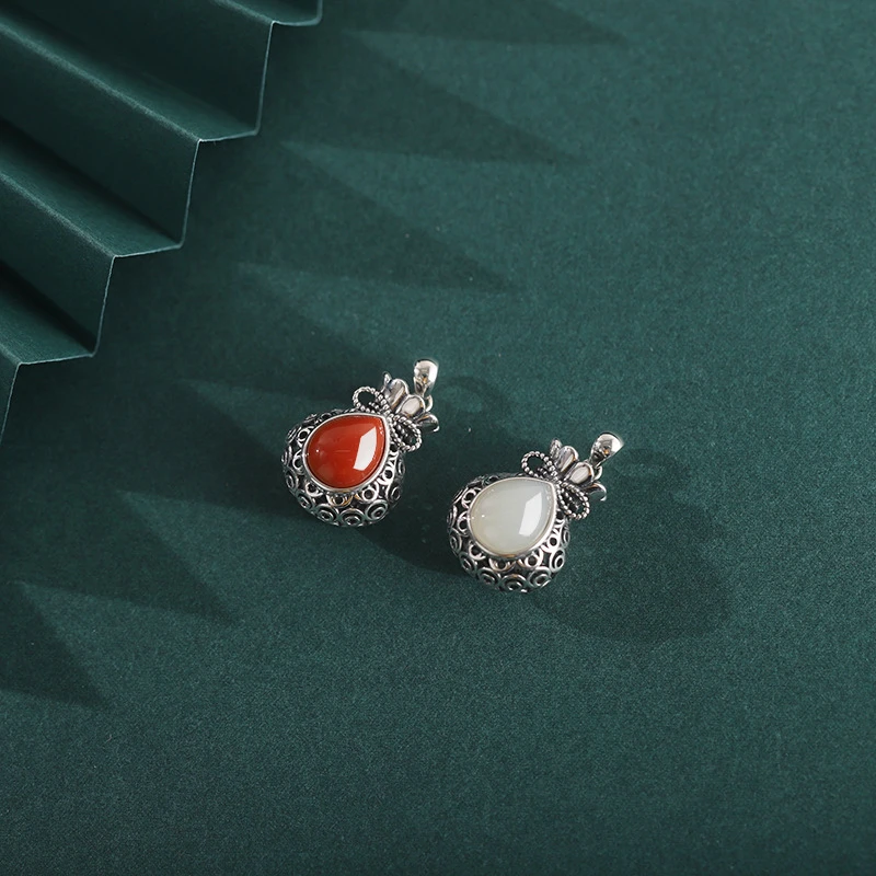 | option | Thai Silver Color Hetian Jade (Single Pendant), 925 Silver, Thai Silver Color Southern Red Agate (Single Pendant), 925 Silver |