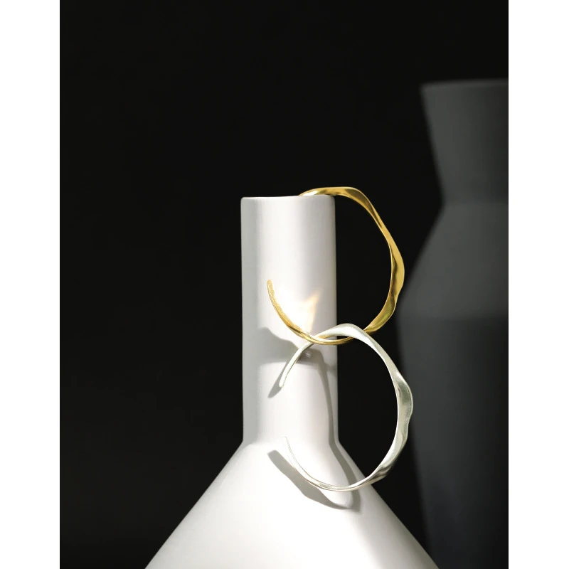 217 Korean S925 Sterling Silver Bracelet New Bangle Simple Irregular Concave Convex Surface Glossy Racelet