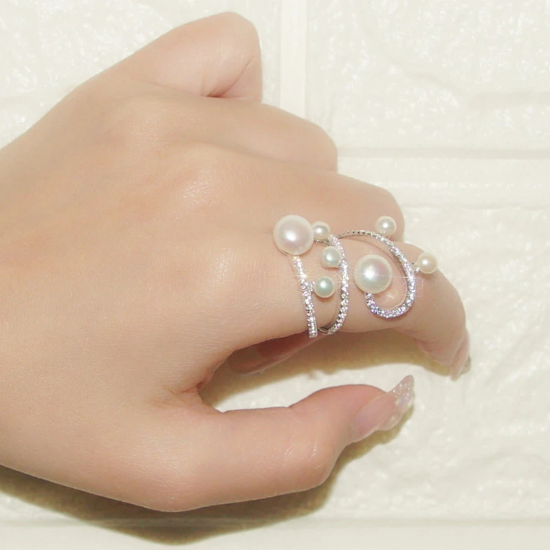 Classic Style Geometric Sterling Silver Inlay Freshwater Pearl Rings
