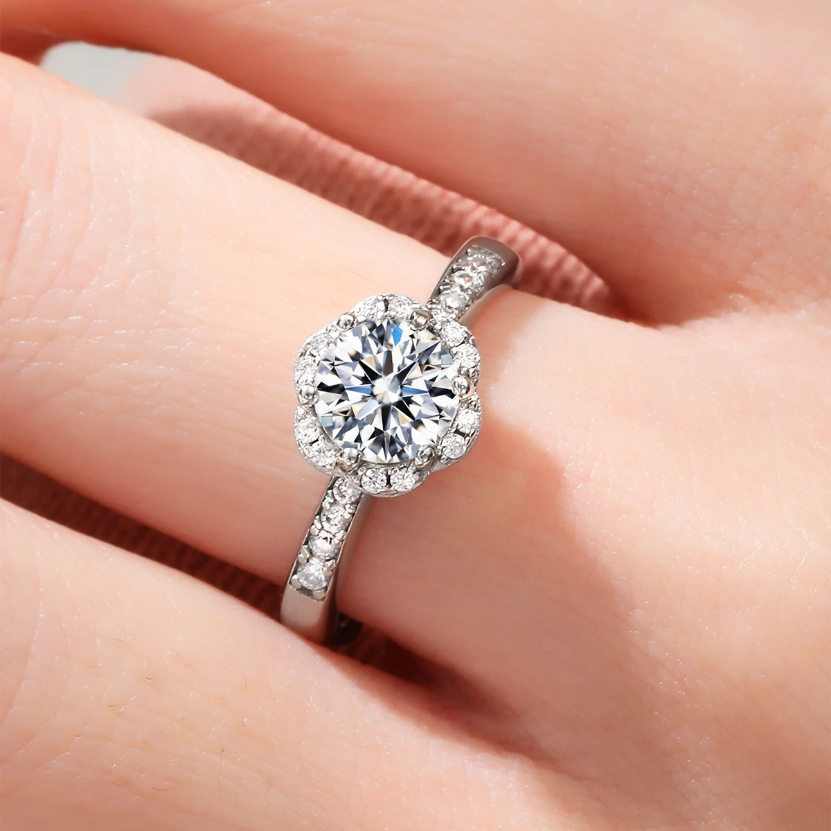 Classic Style Hexagram Round Sterling Silver Inlay Moissanite Rings