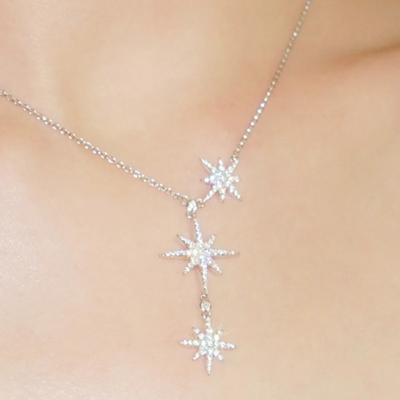 Classic Style Star Sterling Silver Inlay Artificial Gemstones Pendant Necklace