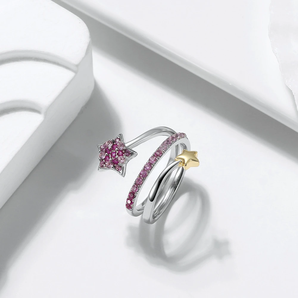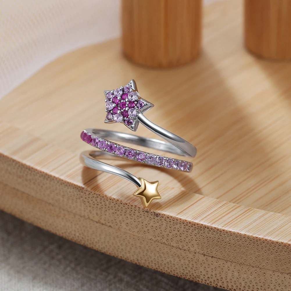 Elegant Star Sterling Silver Plating Inlay Zircon Rings