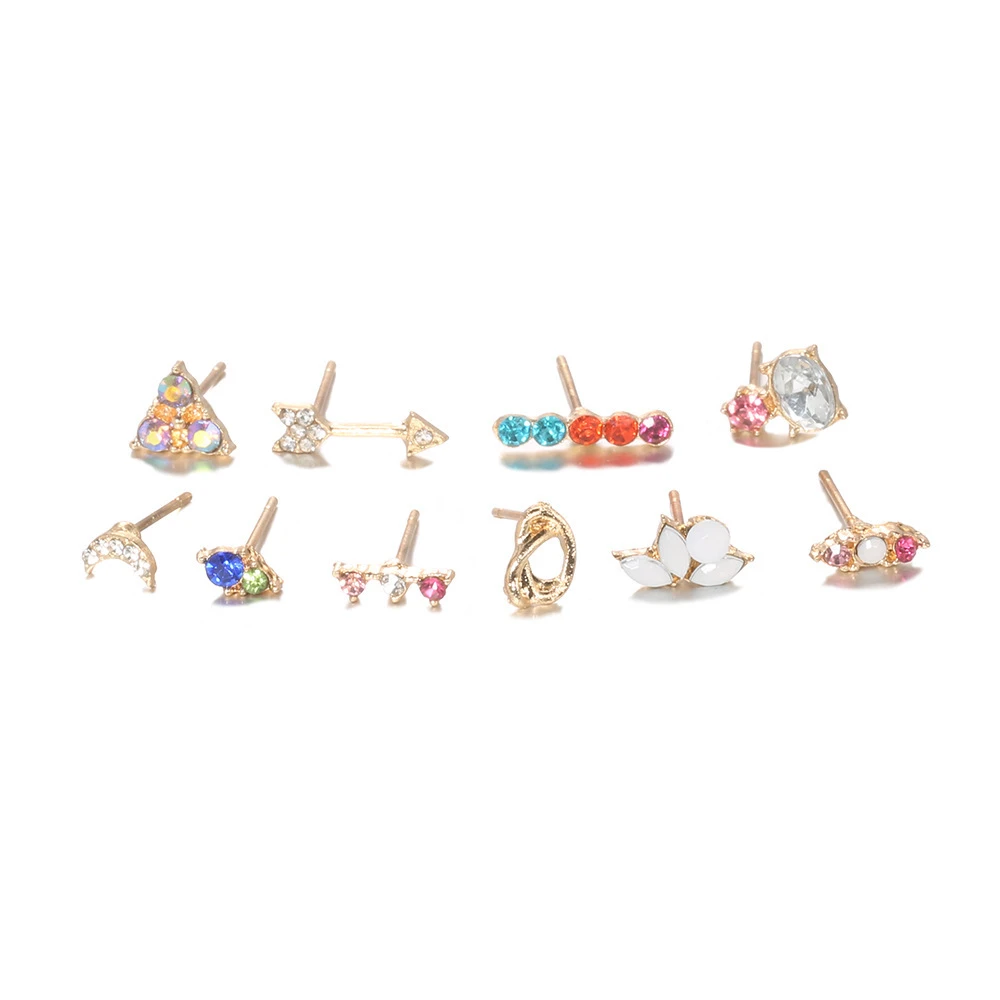 Fashion Simple Color Diamond 5 Pairs Of Earrings Alloy Earrings
