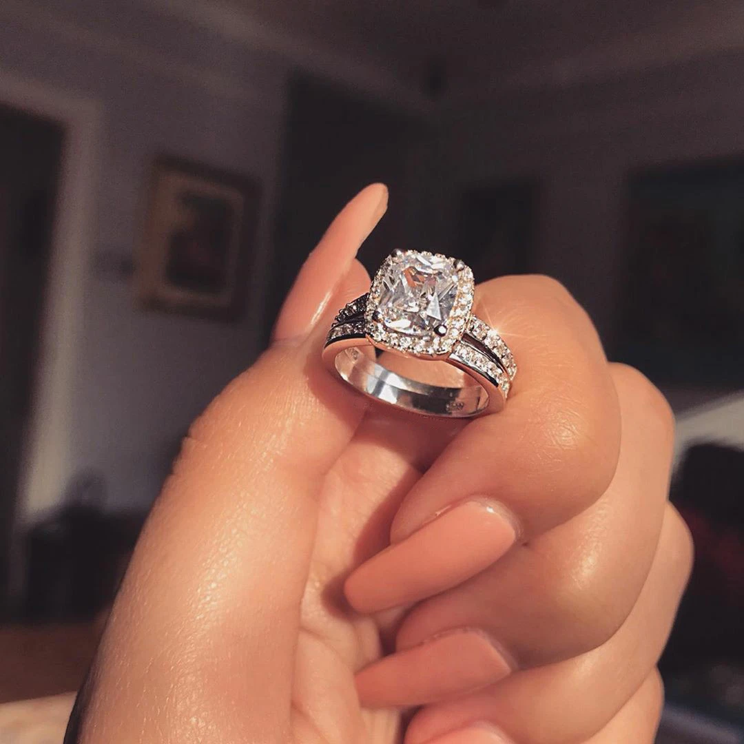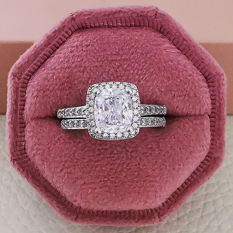 Fashion Square Sterling Silver Inlay Artificial Diamond Rings 1 Piece