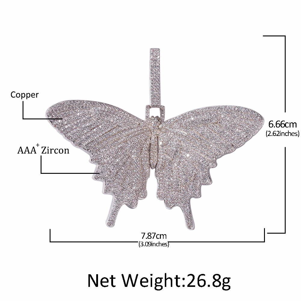 Hip-Hop Classic Style Butterfly Copper Zircon Charms Pendant Necklace In Bulk