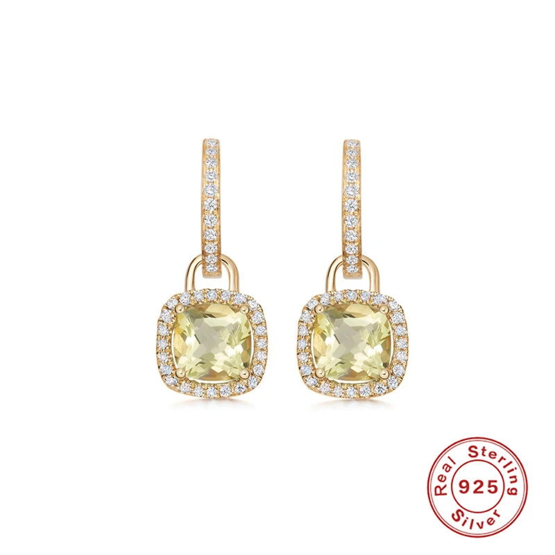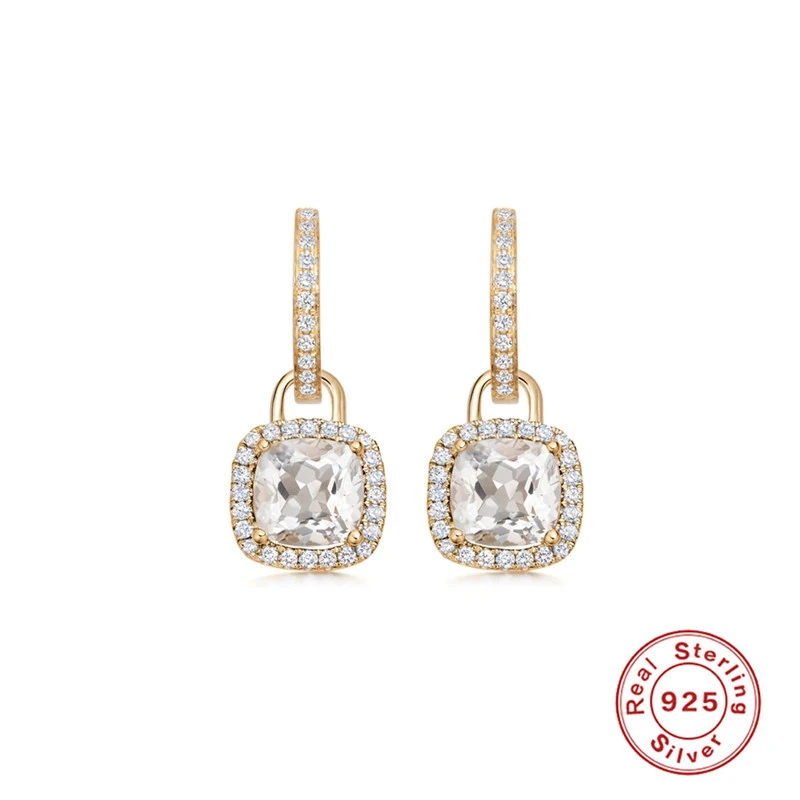 INS Style Square Sterling Silver Inlay Zircon Drop Earrings 1 Pair