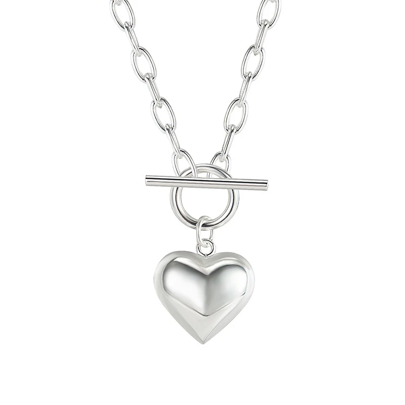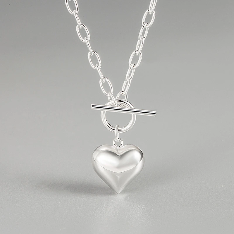 Korea Retro 925 Sterling Silver Heart Necklace Female OT Buckle Necklace Wholesale