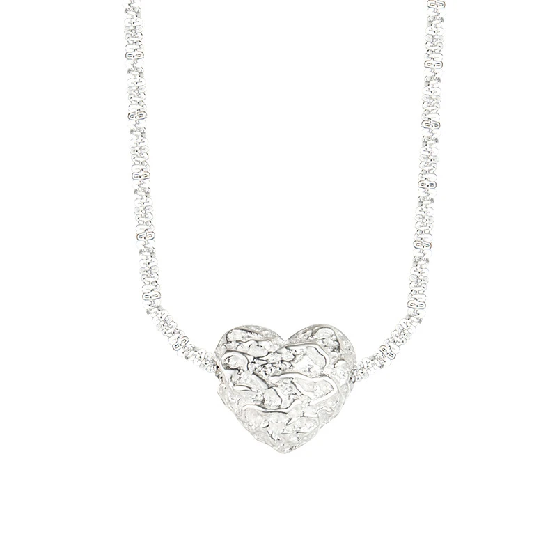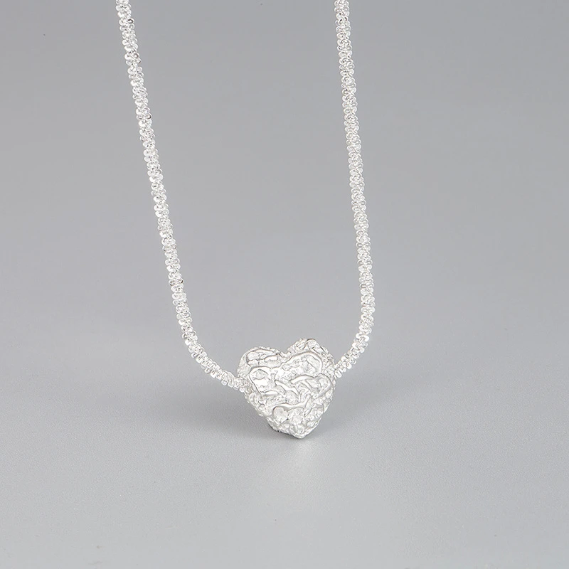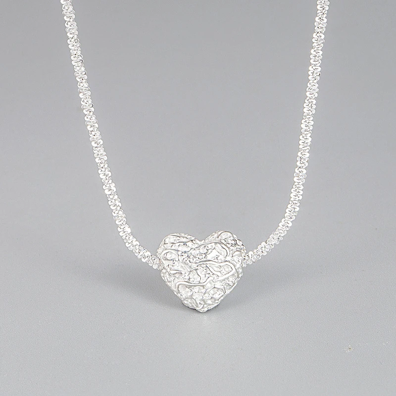 Korean S925 Sterling Silver Folds Heart-shaped Lavicle Chain Silver Jewelry