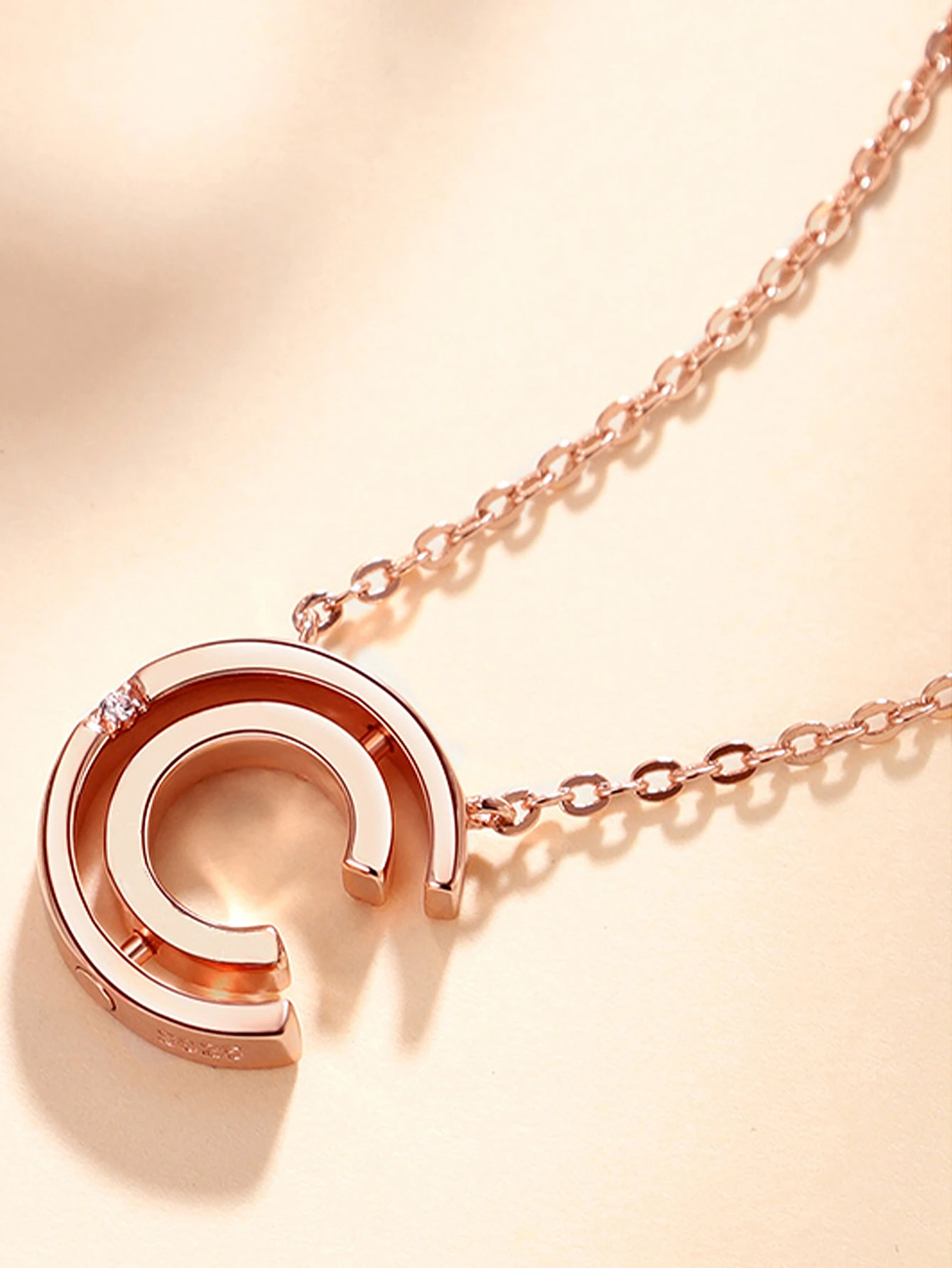 Lady Classic Style Semicircle Letter Sterling Silver Rose Gold Plated Zircon Pendant Necklace In Bulk