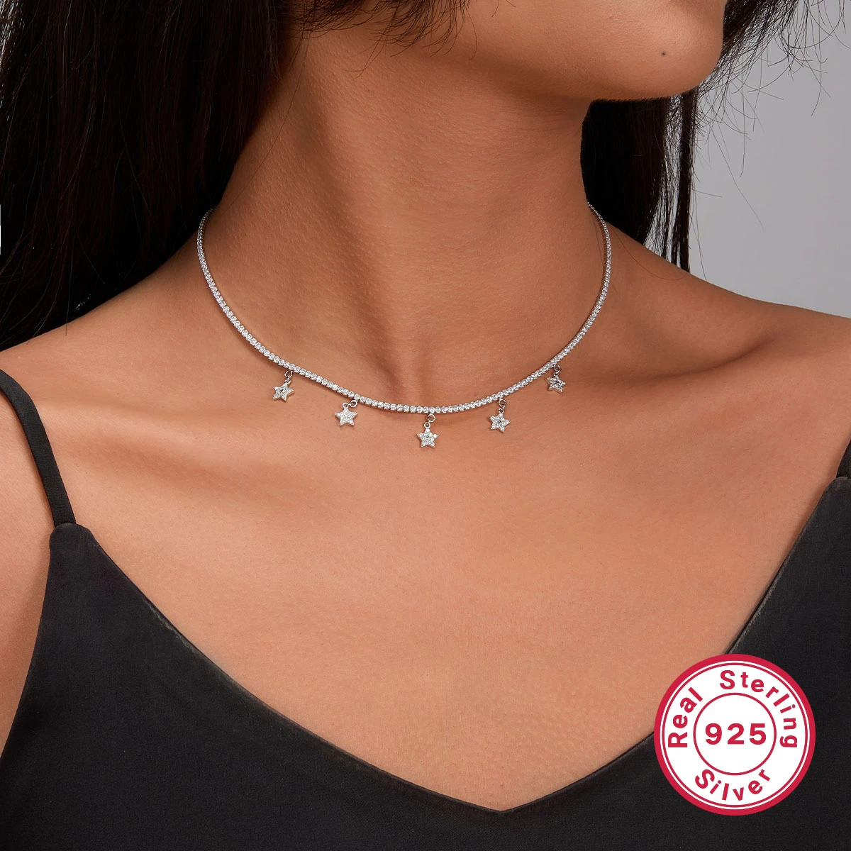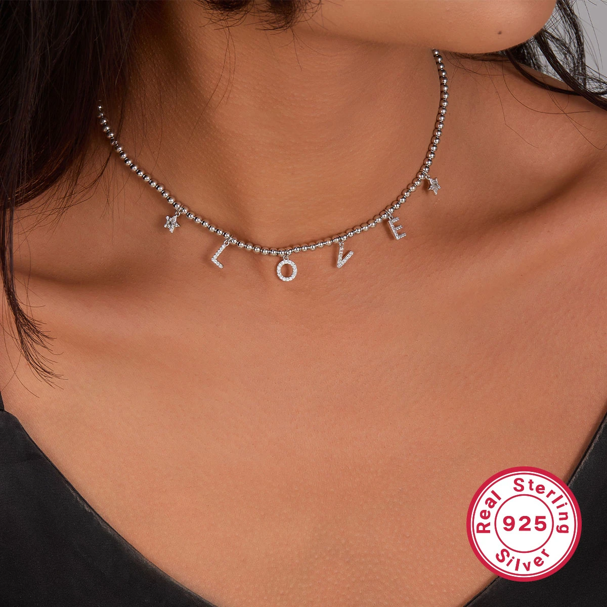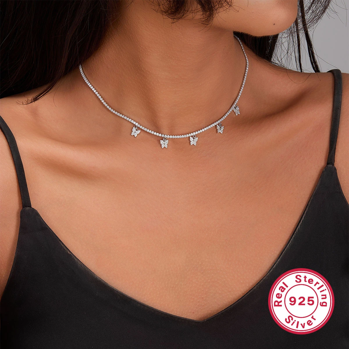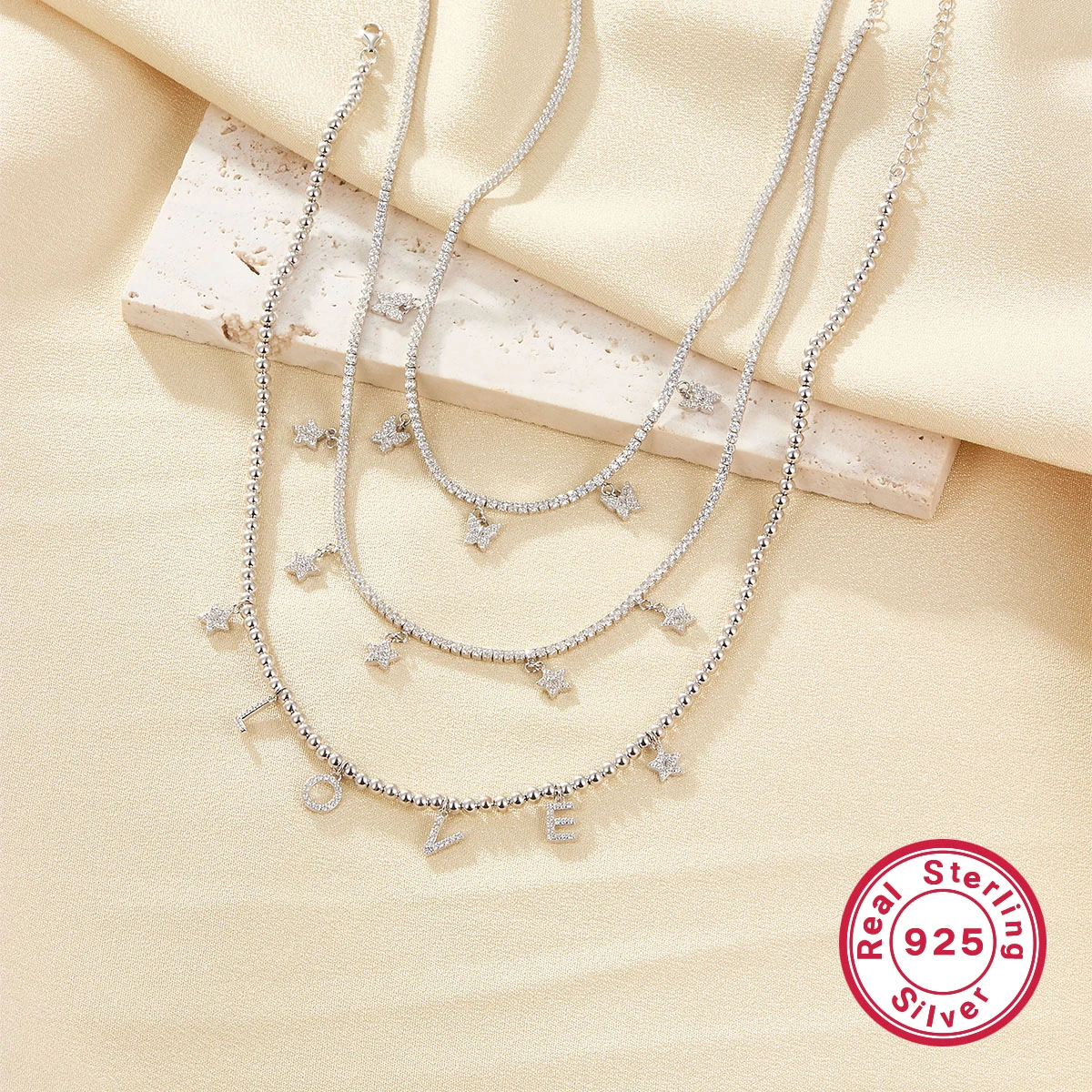 Lady Letter Star Butterfly Sterling Silver Plating White Gold Plated Necklace