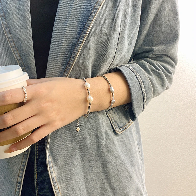 | option | Small Pieces of Silver Baroque Bracelet-White pearl, 925 Silver, Small Pieces of Silver Baroque Bracelet-Gray Pearl, 925 Silver |