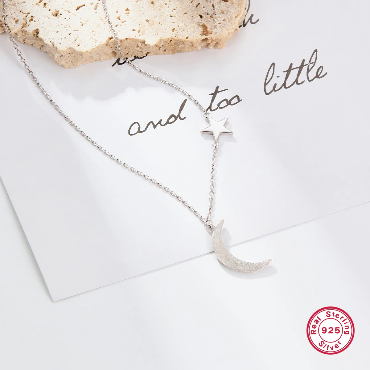 Luxurious Star Moon Sterling Silver Plating White Gold Plated Pendant Necklace