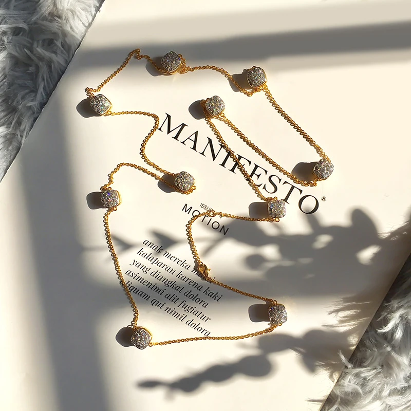 Modern Style Geometric Artificial Crystal Copper Plating Long Necklace