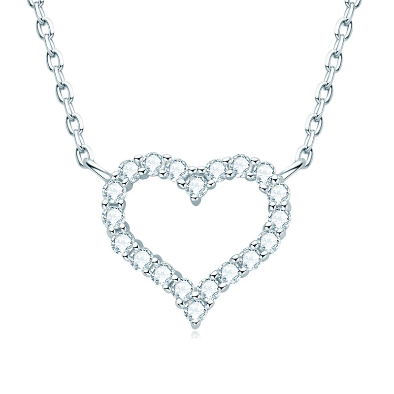 Modern Style Heart Shape Sterling Silver Moissanite Pendant Necklace In Bulk