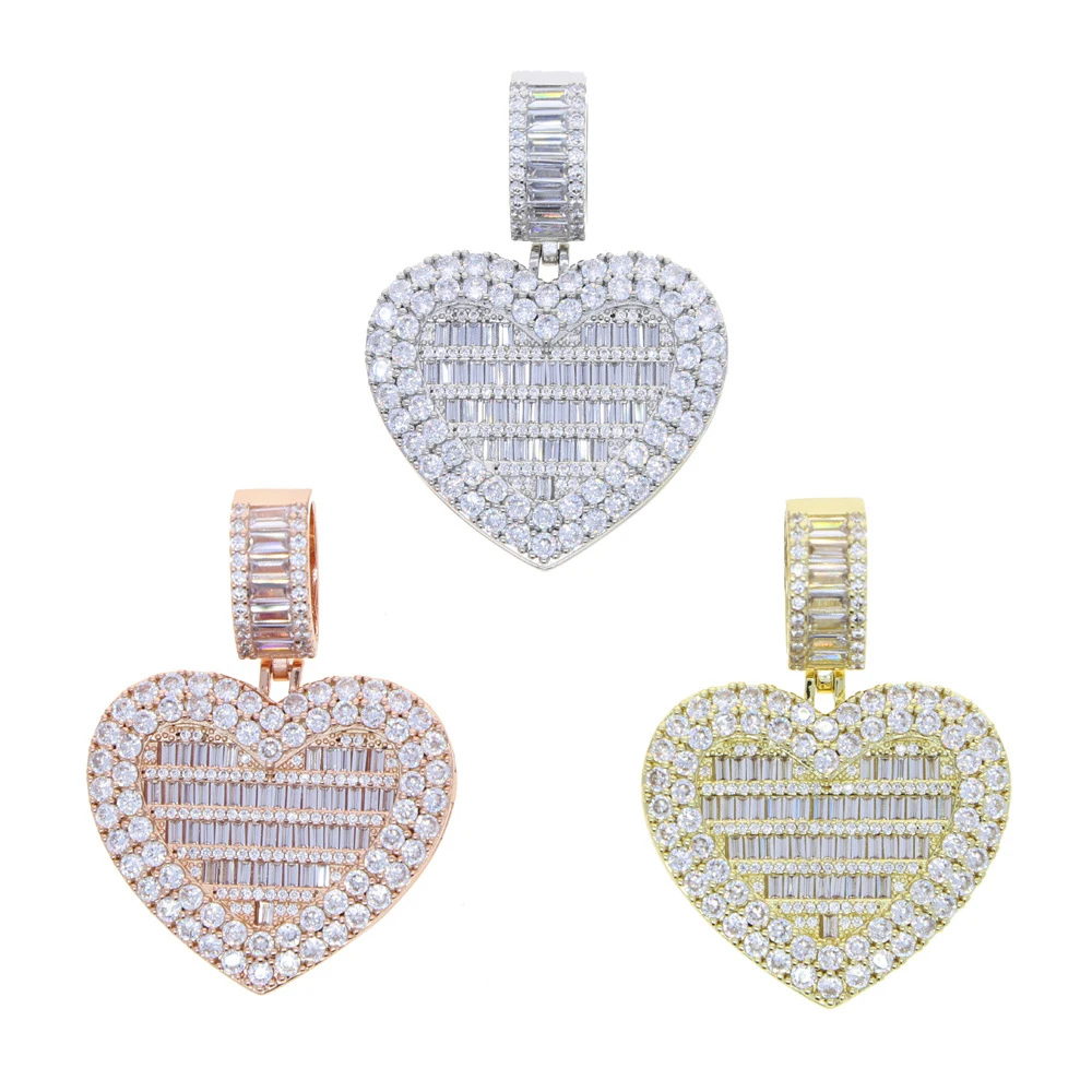 Punk Heart Shape Copper Inlay Rhinestones Pendant Necklace Long Necklace