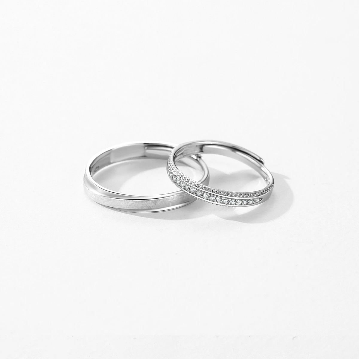 Romantic Simple Style Lines Sterling Silver Plating Inlay Zircon Rhodium Plated Rings