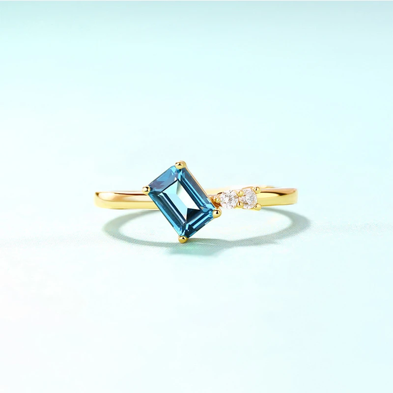 Be the first to review “Simple Fashionable S925 Sterling Silver Plated 9K Gold Blue Topaz Square Ring” Cancel reply