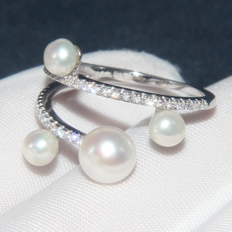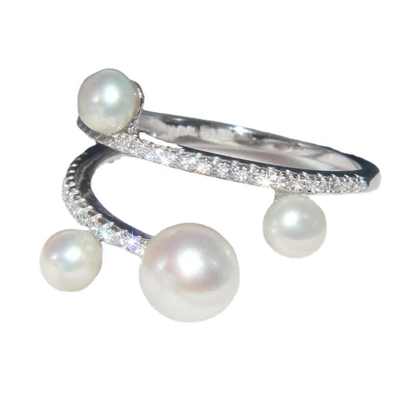Solid Color Sterling Silver Pearl Inlay Zircon Rings