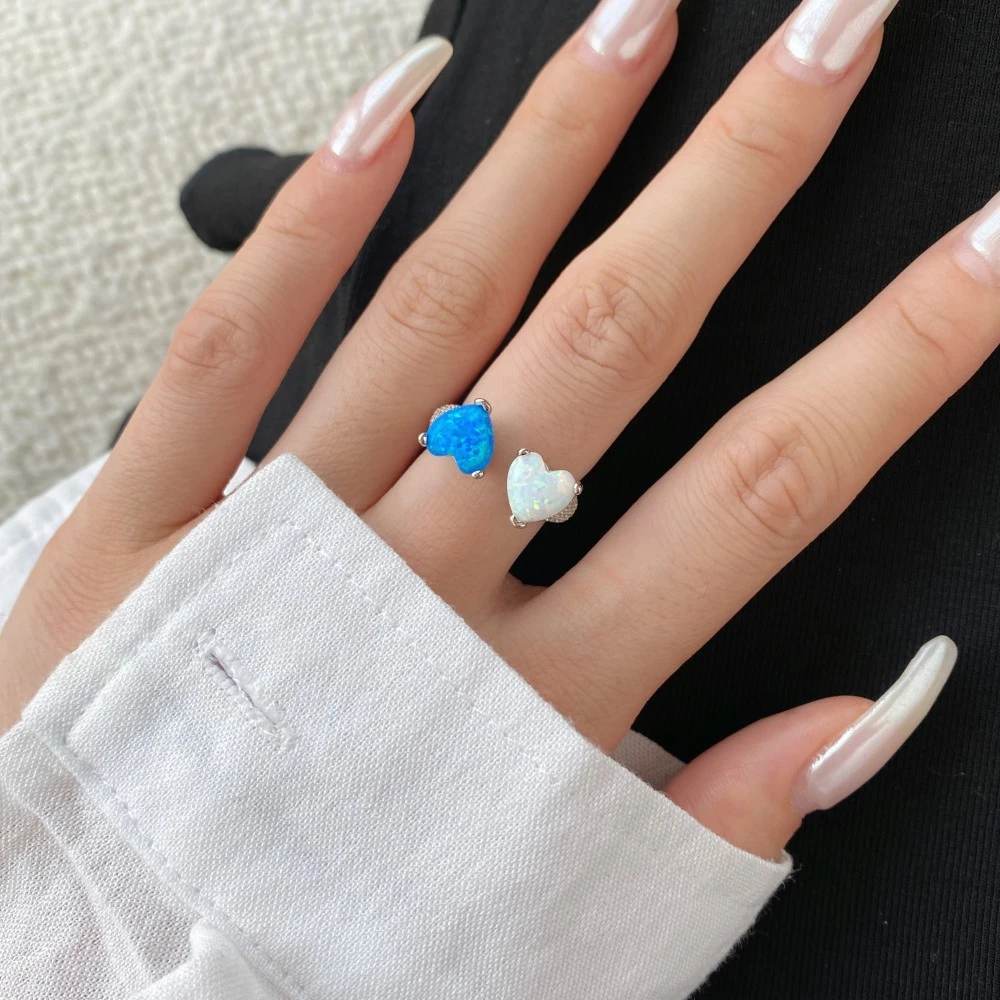 Sweet Heart Shape Sterling Silver Inlay Opal Open Ring
