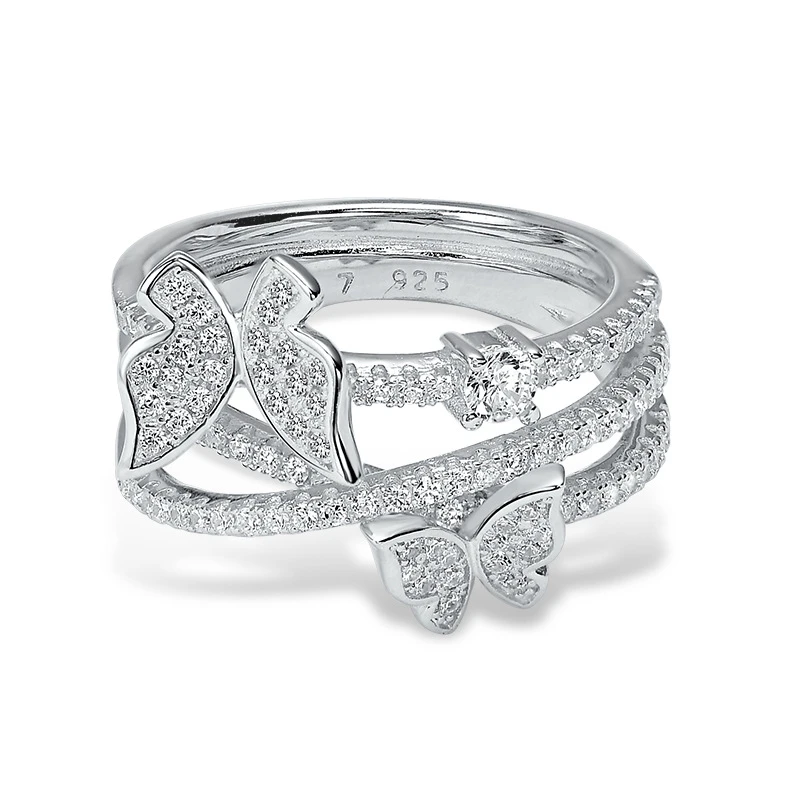 Wholesale INS Style Korean Style Butterfly Sterling Silver Zircon Rings