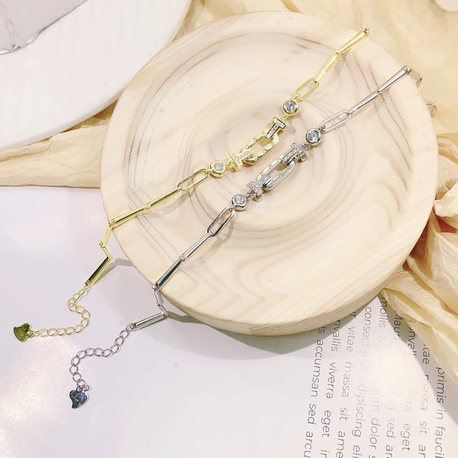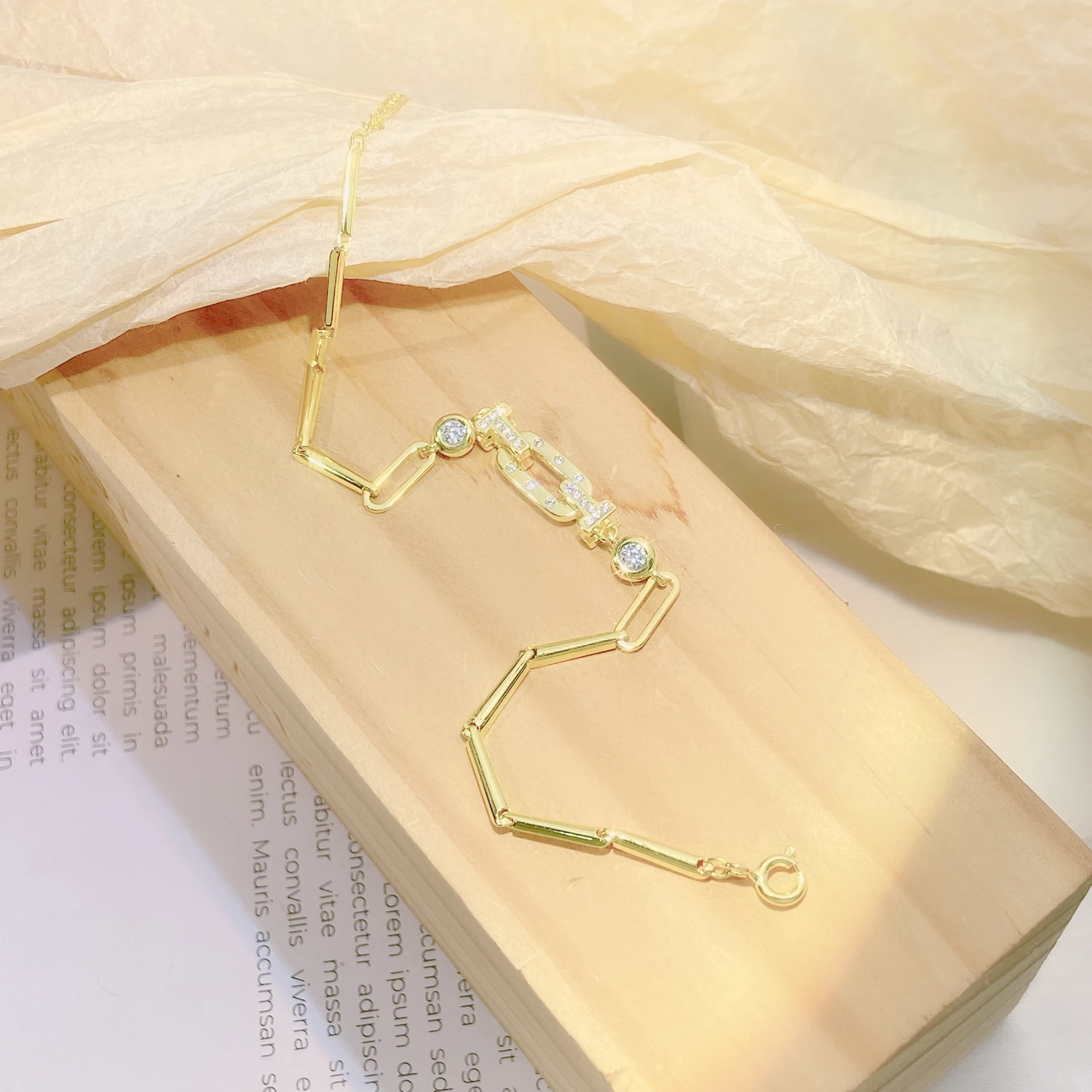 Wholesale Simple Style Geometric Sterling Silver 14K Gold Plated Rhodium Plated Zircon Bracelets